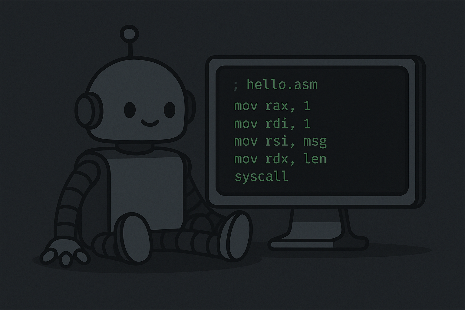 ; hello.asm ; An assembly program that prints "Hello, World!" and exits ; ------------------------------------------------------------------ section .data ; Our data section. This is where initialized variables are stored. msg db 'Hello, World!', 0ah ; 'db' defines bytes; 0ah is the newline character len equ $ - msg ; 'equ' defines a constant: length of the message section .text ; Our code section. All executable instructions go here. global _start ; The linker needs to know the program's entry point _start: ; 1. Write the message to standard output mov rax, 1 ; syscall number 1 is 'write' mov rdi, 1 ; file descriptor 1 is stdout mov rsi, msg ; address of the string to write mov rdx, len ; number of bytes to write syscall ; execute the system call ; 2. Exit the program mov rax, 60 ; syscall number 60 is 'exit' mov rdi, 0 ; exit code 0 (success) syscall ; execute the system call |