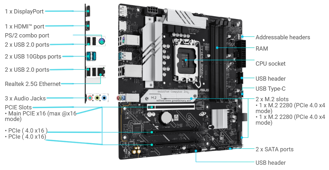 Credit: Diagram adapted from ASUS’s official documentation for the PRIME B760M-A II-CSM motherboard. Used for educational/reference purposes only. All trademarks belong to their respective owners.