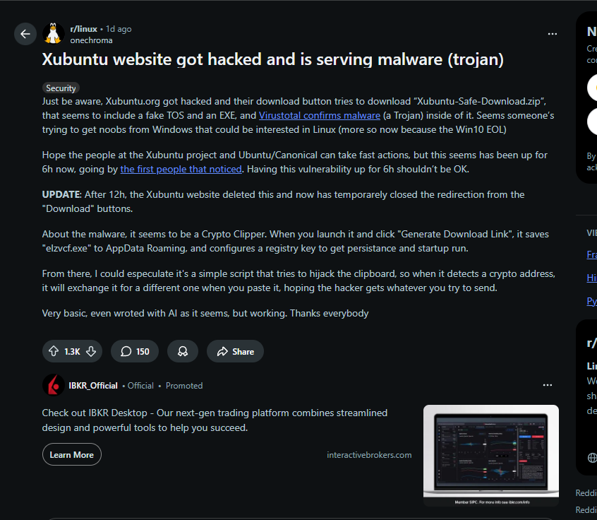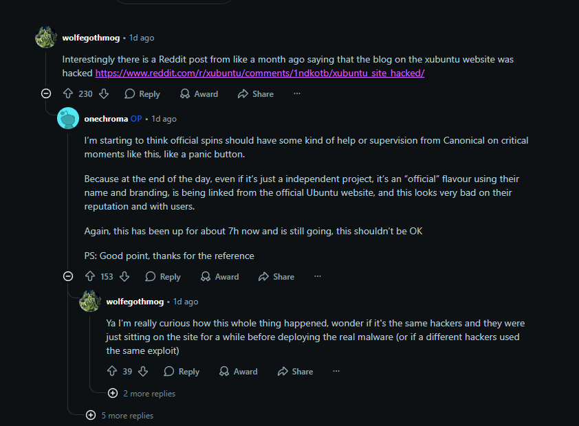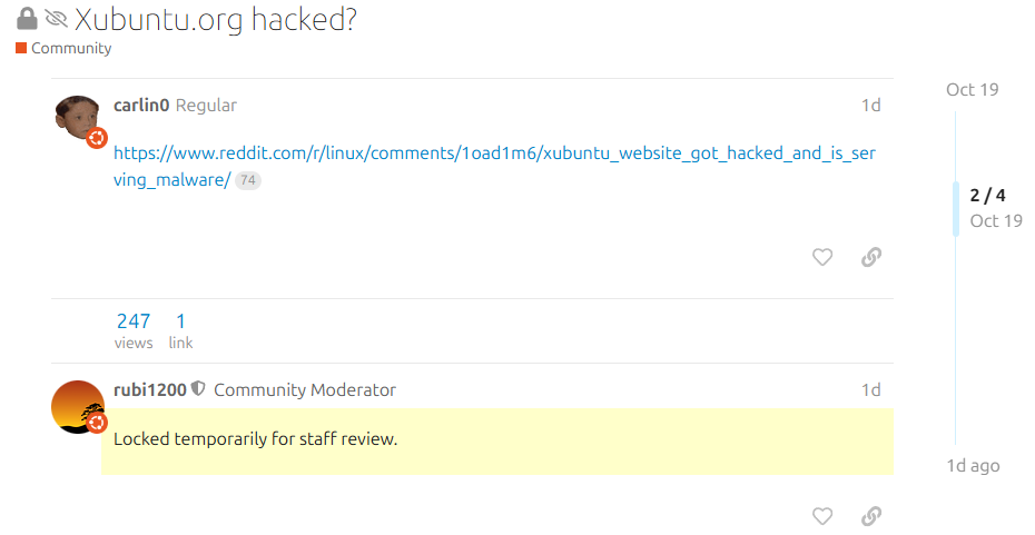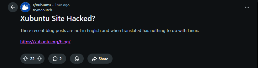 -https://www.reddit.com/r/linux/comments/1oad1m6/xubuntu_website_got_hacked_and_is_serving_malware